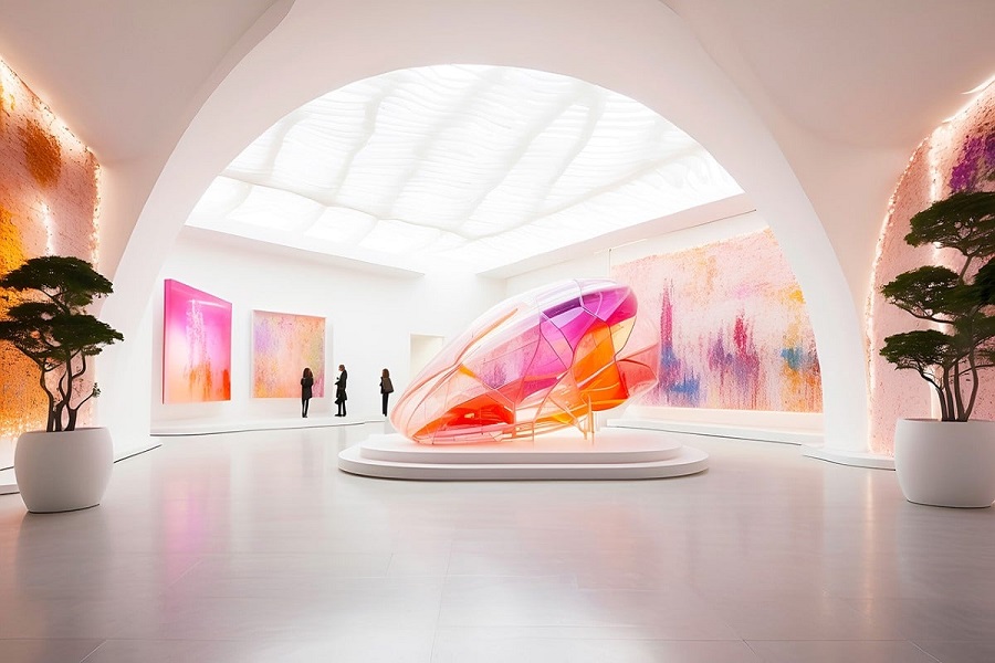 Вдъхновен от връзката на Венеция със стъклото и водата, Luca Curci Architects проектира зашеметяващия Музей на плаващото стъкло. С подкрепата на AI, фирмата е създала спиращи дъха изображения на цветната структура, която размива границите между изкуството и природата.