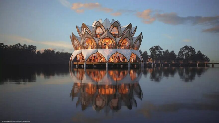Архитектурата, вдъхновена от природата, съществува от векове, но нова концепция за ресторант включва темата до самата й сърцевина. Проектиран от Thilina Liyanage, който често създава архитектурни визуализации и макети, концепцията на ресторант Nelumbo се разгръща като разцъфнал лотосов цвят.