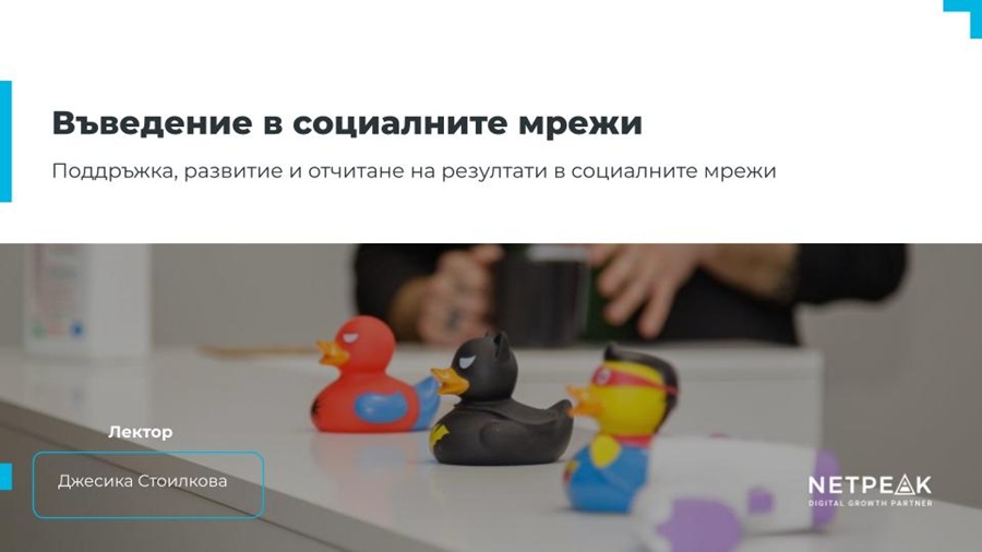 В рамките на лекцията беше разгледана и SMM стратегията на Netpeak Bulgaria като практически казус. Компанията поддържа активно присъствие в множество дигитални канали – от Facebook и Instagram до LinkedIn, TikTok и YouTube, като всеки от тях има ясно дефинирана роля и тип съдържание.