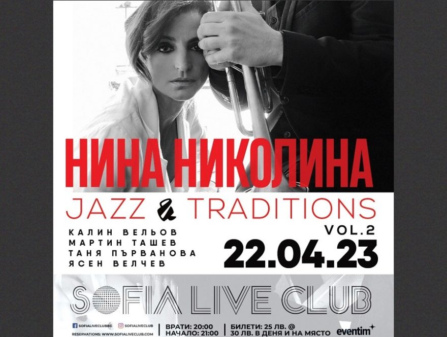 Концертът “Jazz & Traditions VOL. 2“ на Нина Николина е на 22 април в Sofia Live Club“.