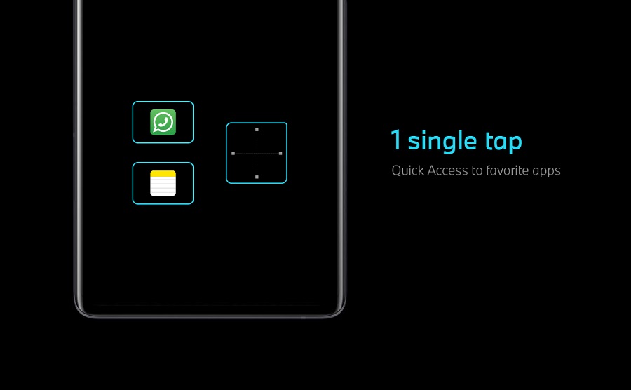 Друго впечатляващо нововъведение на vivo в системата за ултразвуково отключване с пръстов отпечатък е възможността за достъп до любимите приложения на потребителя чрез едно докосване. Голямата зона на сензора за пръстов отпечатък позволява на потребителите да зададат бърз достъп до избрани приложения. Така те могат отключат конкретно приложение за отрицателно време чрез докосване на определена част от сензора.