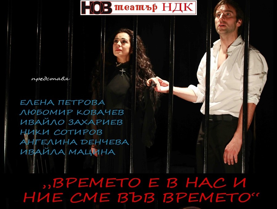 „Нов театър“ НДК Ви кани на Премиерата на спектакъла „ВРЕМЕТО Е В НАС И НИЕ СМЕ ВЪВ ВРЕМЕТО” на 28.09.2021 г. от 19.30 часа с участието на известните български артисти Елена Петрова, Любомир Ковачев, Ивайло Захариев, Ники Сотиров, както и на младите дебютантки Ангелина Денчева, Ивайла Мацина.