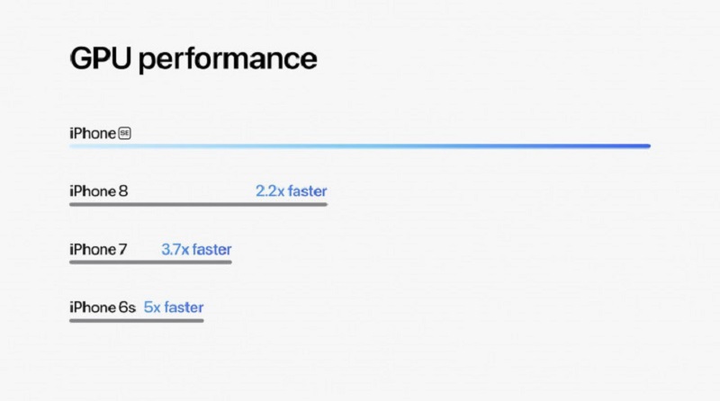 iPhone SE разполага с 6-ядрен процесор, 2,2 пъти по-бърз от iPhone 8. Това е много по-бързо, отколкото си мислите. Новият малък смартфон идва с 16-ядрен Neural Engine, предназначен да помогне на малкото устройство да изпълнява задачи за машинно обучение при 15,8 трилиона операции в секунда. Това е 26 пъти повече от броя на операциите, които iPhone 8 може да реши.