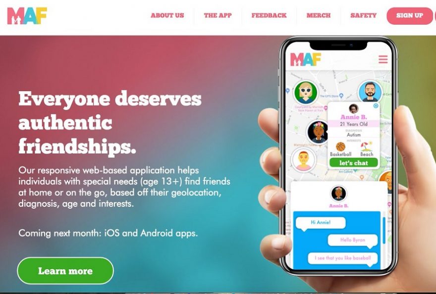 Наричано MAF(Making Authentic Friendships) „Създаване на автентични приятелства“, приложението може да свързва хора на възраст над 13 години, които имат специални нужди, за да могат да създават приятелства въз основа на възраст, диагноза, интерес и географско местоположение.