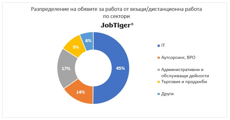 Разпределението на този тип възможности по сектори е следното: 45% в сектора „ИТ“, следван от „Административни и обслужващи дейности“ (17%), аутсорсинг (BPO) индустрията (14%) и „Търговия и продажби“ (9%).