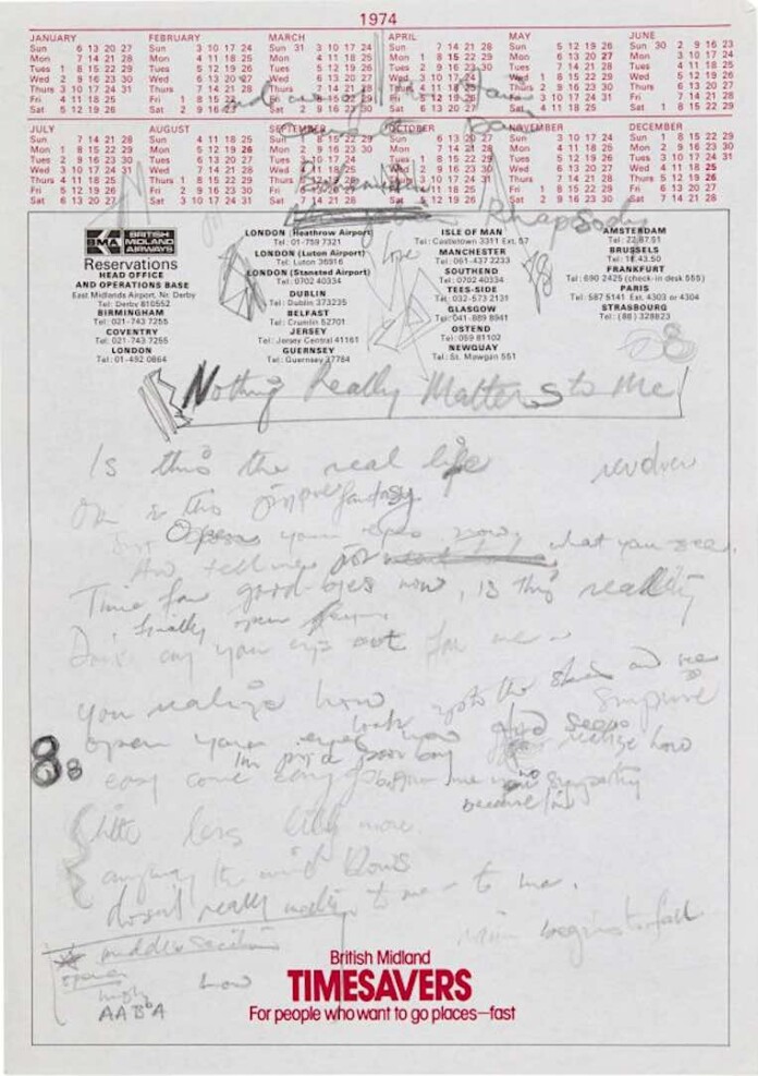 Freddie Mercury’s autograph working lyrics for Bohemian Rhapsody (1974) SWNS / Sotheby’s London
