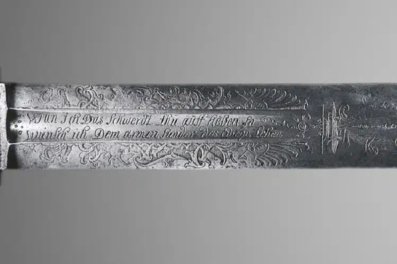 Един такъв пример е меч на палач от 17-и век в колекцията на Музея на изкуствата в Кливланд. Произхождащо от Германия, острието гласи: „Wan ich Das Schwerdt thu auff heben so / Wunch ich Dem armen sunder das Ewege Leben“, което се превежда като „Когато вдигам този меч, пожелавам на този беден грешник да получи вечен живот“.