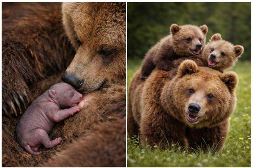 Знаете ли, че новороденото мече тежи едва 300 грама и се побира в човешка длан… докато майка му е 300 килограма?