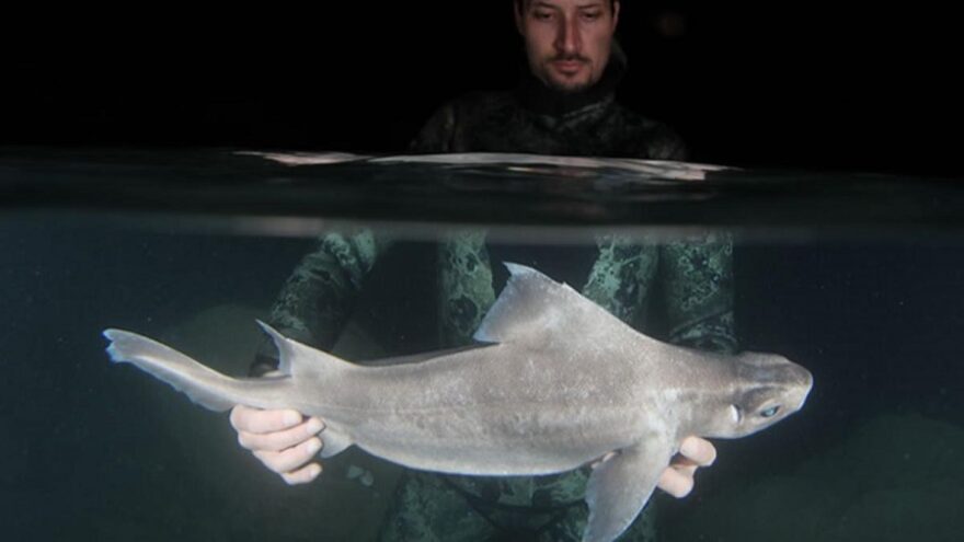 Неотдавна търговски траулер прави необичаен улов край бреговете на Албания – призрачно бяла дълбоководна акула, известна като ъгловата груба акула (Oxynotus centrina). Този рядък екземпляр е намерен близо до остров Сазан, уединен военен пост, на дълбочина около 200 метра.