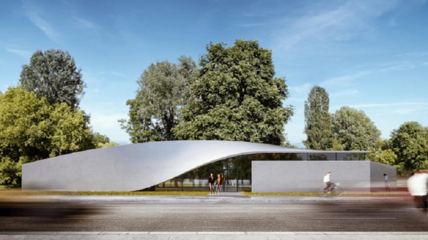 The Cube ще включва покрив, който се огъва, за да стане и стена, позволявайки на стената и покрива да се „сливат функционално заедно като органичен континуум“, казват от Henn.