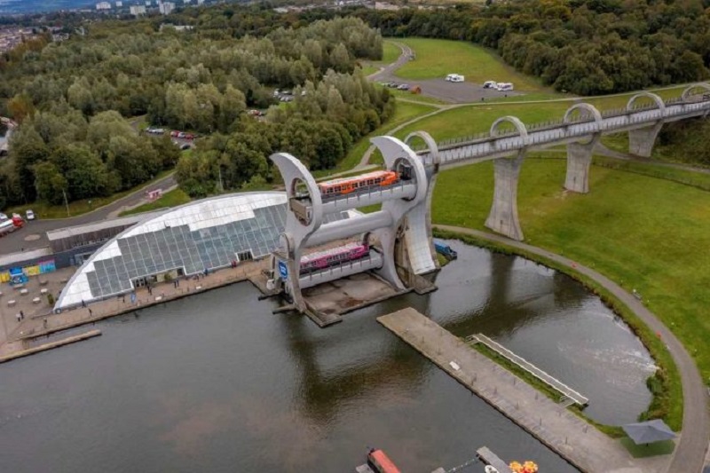 Известно като Колелото на Falkirk, това е първият в света въртящ се лодков асансьор, но раждането му е съчетано с национални усилия за почистване, благодарение на които между 1999 и 2003 г. са каналите са почистени от стари коли, изхвърлени гуми и безброй тонове замърсена почва и стават достатъчно безопасни за гребане.