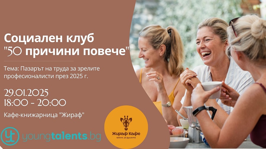 На 29-ти януари, сряда, в 18,00 часа, заповядайте на първото социално кафе „50 причини повече“ за всички млади по дух хора над 50 г. Домакин на това уникално събитие, предназначено за хората над 50 години, които не са изгубили желанието си за развитие и продължават да търсят нови възможности за реализация.