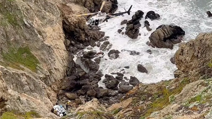 Автомобил Tesla, превозващ двама възрастни, деветгодишно момче и четиригодишно момиче, се движи на юг по магистрала 1 южно от тунела Tom Lantos, когато се отклонява от пътното платно, пада от 76-метрова скала и се приземява на скалист плаж.
