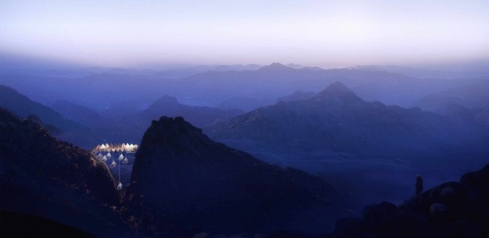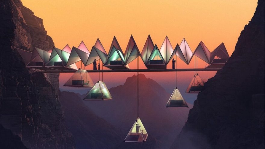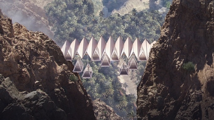 Най-добрият планински „глемпинг“, така нареченият Floating Retreat, е плод на въображението на базираното в Дубай дизайнерско студио Ardh Architect, на което беше възложено да проучи нов вид курорт, който съчетава екологичното съзнание и признателността към природата със съвременния комфорт.