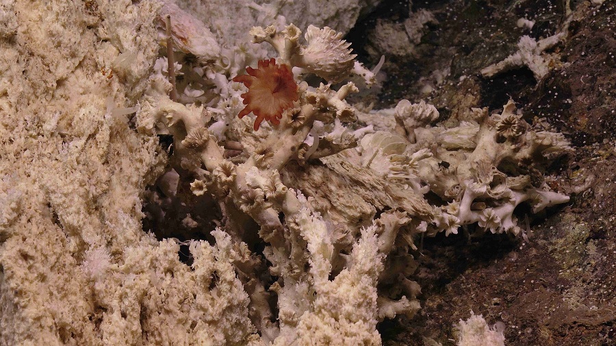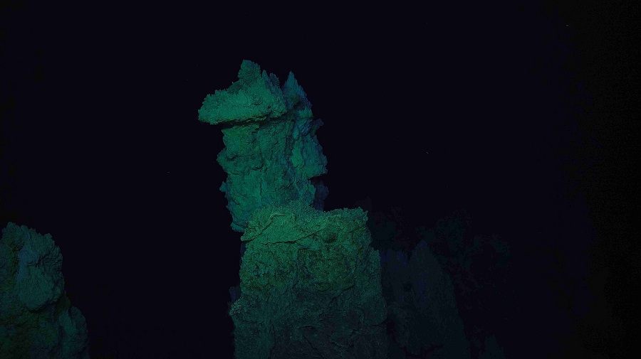 Дълбоко в океана, в близост до подводна планина в Средноатлантическия хребет, се намират поредица от карбонатни „кули“, които се издигат от черните дълбини и създават назъбен пейзаж.