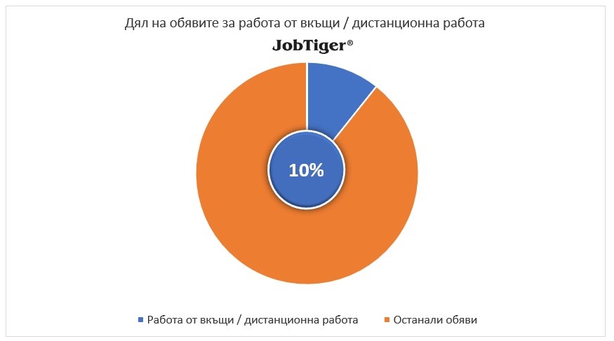 Анализът на HR компанията и кариерен сайт JobTiger показва, че броят на предложенията за работа от вкъщи и/или дистанционна работа е намалял с 34% спрямо предходния месец. Общият брой на този тип предложения е 2 100, като от началото на годината те са също с 34% по-малко и с 17% по-малко спрямо м. декември 2023 г.