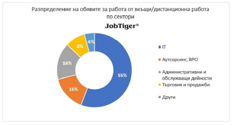 Разпределението на този тип предложения по сектори е, както следва: 55% в сектора „ИТ“, следвани от „Административни и обслужващи дейности“ (16%), секторите на аутсорсинг (BPO) индустрията (15%) и „Търговия и продажби“ (8%).