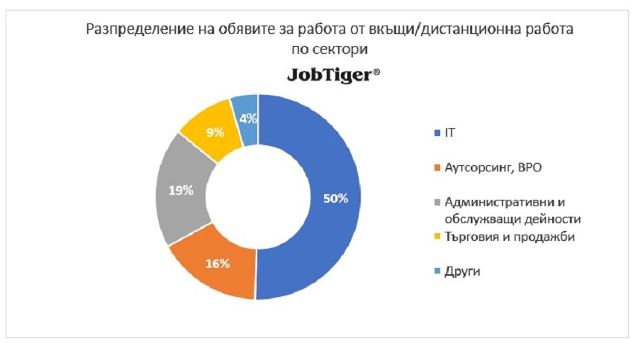 Разпределението на този тип предложения по сектори е както следва: 50% в сектор „ИТ“, следван от „Административни и обслужващи дейности“ (19%), секторите на аутсорсинг (BPO) индустрията (16%) и „Търговия и продажби“ (9%).