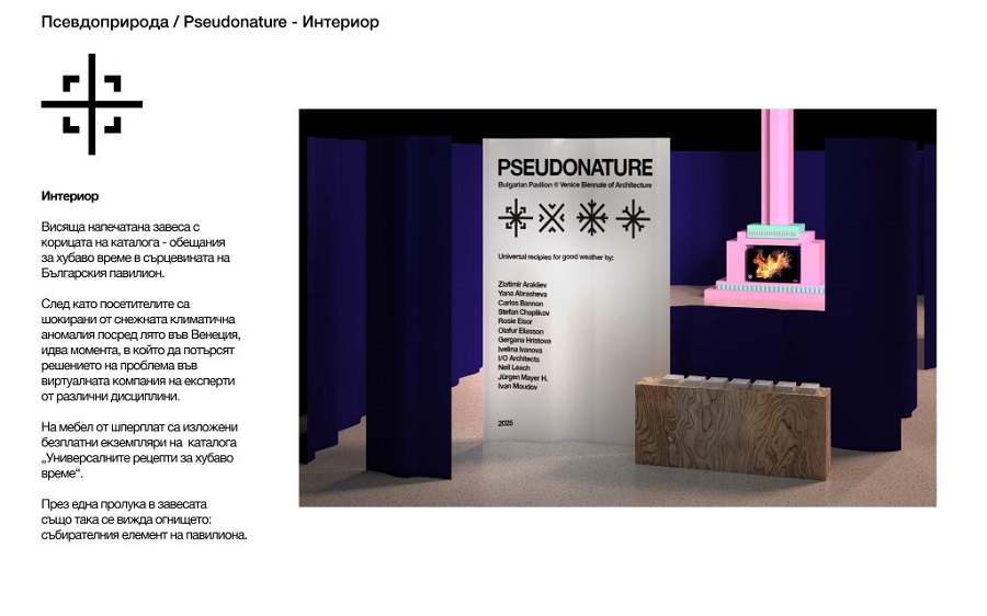 Проектът „Псевдоприрода“ с куратор арх. Ясен Марков е победител с общ резултат 61 от максимално възможни 70 точки в конкурса за български павилион на 19-ото издание на Венецианското биенале за архитектура във Венеция. Проектът бе представен по време на пресконференцията в галерия „Средец“ на Министерството на културата, на която бе обявено финалното класиране в конкурса.