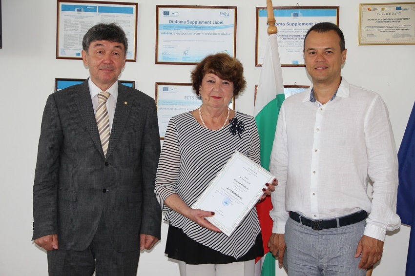 Председателят на Настоятелството на ВСУ „Черноризец Храбър“ проф. д.ик.н. Анна Недялкова бе удостоена със званието Почетен професор на казахстанския Централноазиатски иновационен университет.
