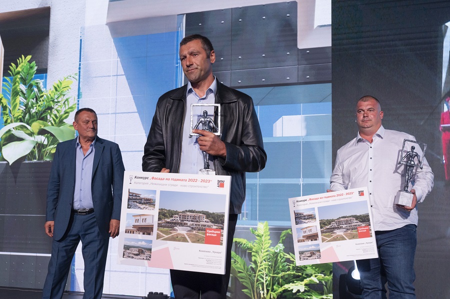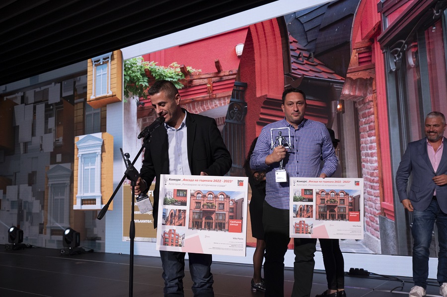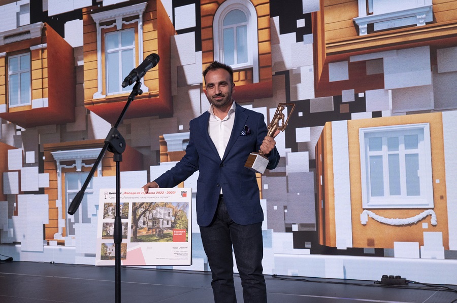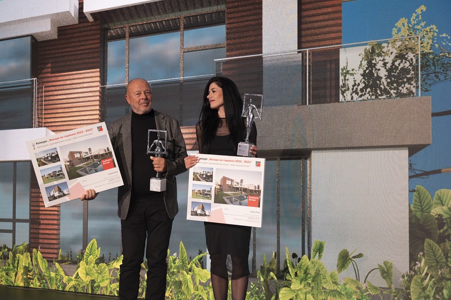 Проектантът архитект Стефан Шекеров и управителят на фирмата-изпълнител „Ем енд Джи 17“ ООД Васил Генчев отнесоха щастливи високото отличие.