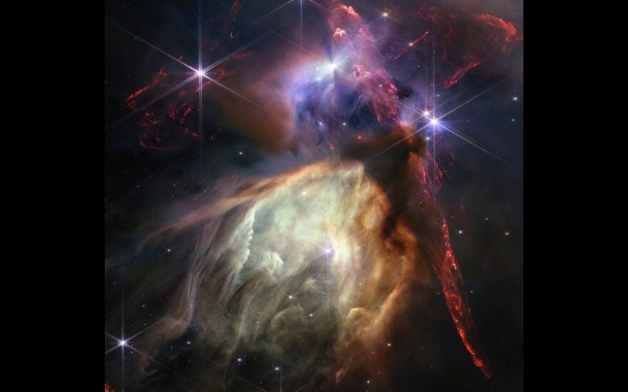 Беше дълга и изключително успешна година за космическия телескоп Джеймс Уеб и за да отбележи годишнината от влизането му в експлоатация, НАСА показа живата снимка на Уеб на малка звездообразуваща област в облачния комплекс Rho Ophiuchi.