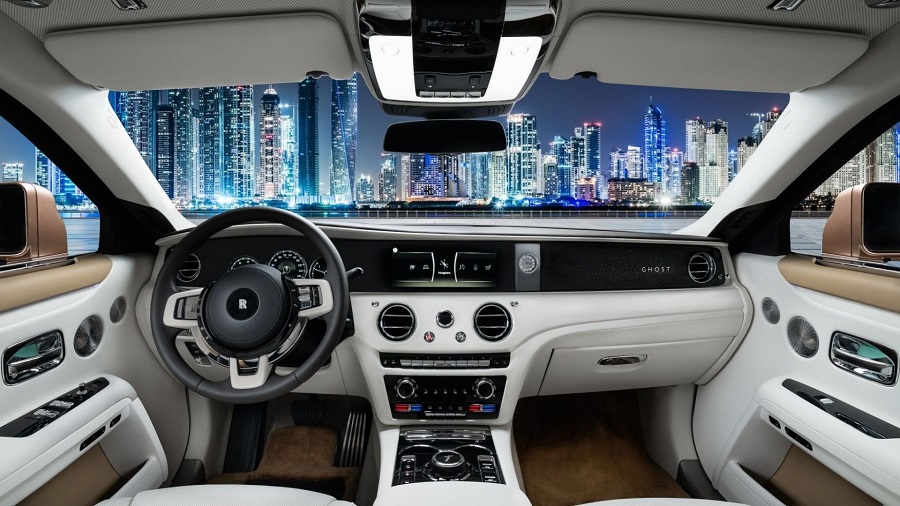 Сядайки в Ghost Extended, човек се пренася в царството на чистата елегантност. Интериорът е декориран в Grace White и Moccasin, включващ най-добрите материали. Всеки детайл е прецизно изработен, за да създаде атмосфера на изтънчена красота и спокойствие.