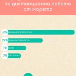 Тенденцията workation (от комбинацията на думите work и vacation на английски езика), която стана изключително популярна на световно ниво по време на пандемията, се оказва устойчива и дори нарастваща през този сезон у нас. Една от причините за това е, че компаниите продължават да предлагат на служителите си опцията за работа, извън офиса. 71% от участвалите в анкета* на Karavani.bg казват, че работодателят им предоставя този избор.