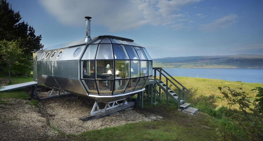Архитектът Родерик Джеймс и съпругата му интериорен дизайнер Аманда Маркъм проектират и построяват AirShip 002 през 2018 г. „Отдалечената, уютна, компактна, облицована с алуминий капсулна структура“ прилича на футуристичен въздушен кораб и предлага спираща дъха гледка към планината от пода до тавана.