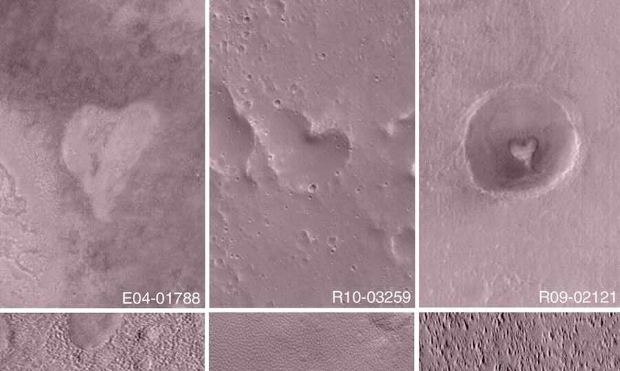 Всички снимки са заснети от Mars Global Surveyor (MGS) през последните десетилетия – но тъй като в петък отпразнувахме Денят на влюбените, това се превърна в идеалният момент да се сподели компилацията онлайн.