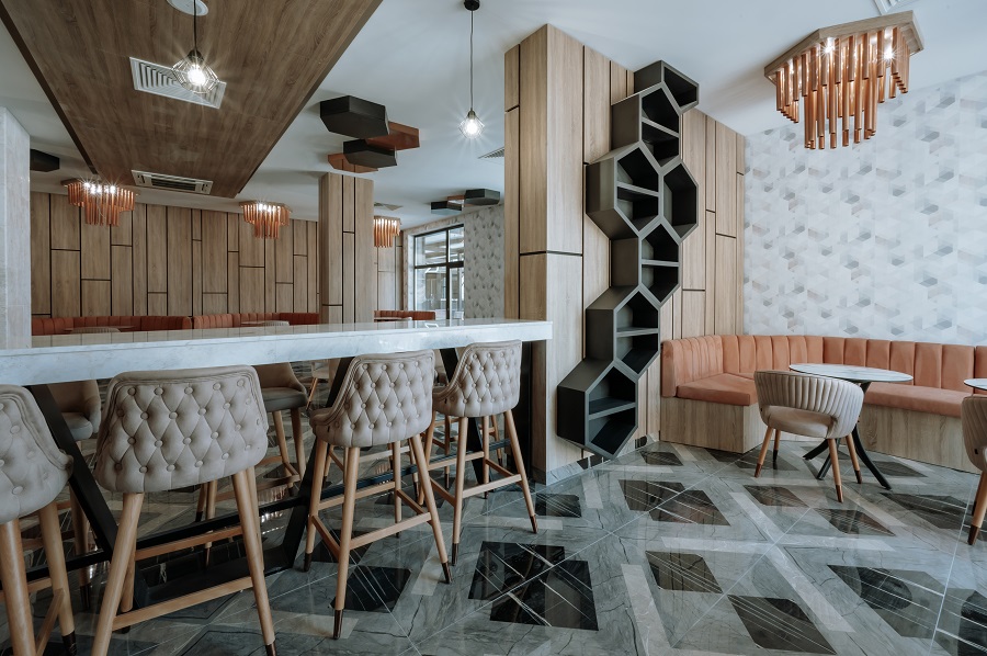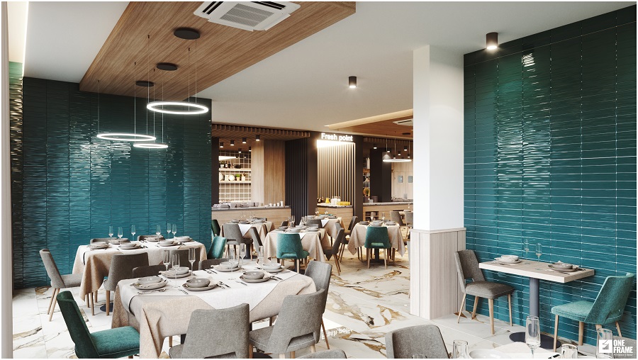 Стандартният ресторант се състои от основното помещение с 220 места и има допълнително отделени още 2 вип зали – съответно с 12 и 24 места, както и прилежаща покривна тераса със 120 места. До края на месец ноември ще открие и a-la-cart ресторантът със 70 места.