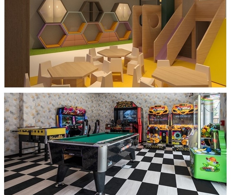 За семействата с малки деца е предвиден прекрасен детски кът с аниматори, които се грижат за безопасното забавление на децата и качествения релакс на техните родители по време на престоя им. За порасналите деца е предвидено допълнителна възможност за забавление в специално направената тийн зала, предлагаща различни електронни и спортни развлечения.
