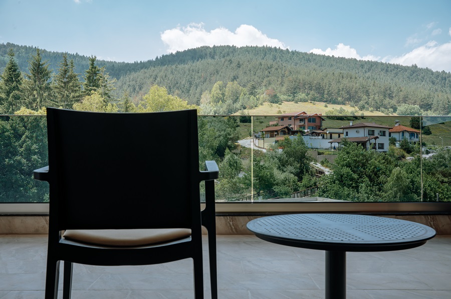 Всяко помещение за хотелско настаняване разполага с просторна и комфортна тераса с маса за релакс и спираща дъха гледка към планината.