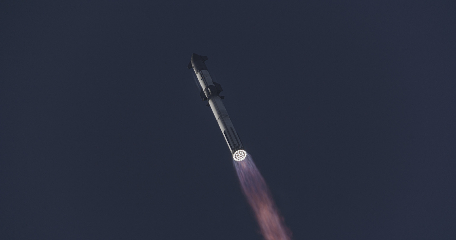 SpaceX сподели много впечатляващи изображения, включително няколко от 33-те двигателя Raptor на Starship, работещи, докато извисяващата се ракета бавно се изкачва от стартовата площадка. Задействани всички наведнъж, тези двигатели произвеждат 17 милиона фунта тяга при излитане, което прави Starship най-мощната ракета в света.