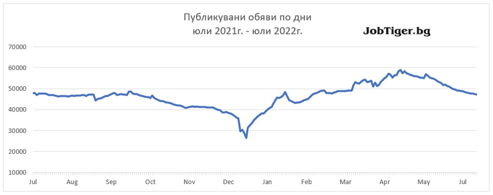 Ключов период през 2022 г. ще бъде последното тримесечие на годината (октомври – декември), като очакванията за момента са тогава да наблюдаваме по-нетрадиционен спад в предложенията за работа.