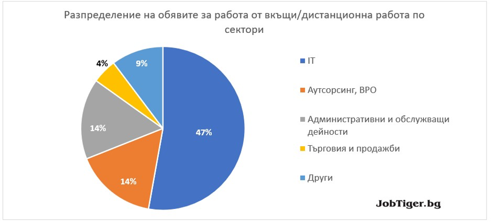 По-голямата част от тези предложения (47%) продължава да бъде в секторa „ИТ“, следвани от „Административни и обслужващи дейности“ (14%), секторите на аутсорсинг (BPO) индустрията (14%) и „Търговия и продажби“ (4%).