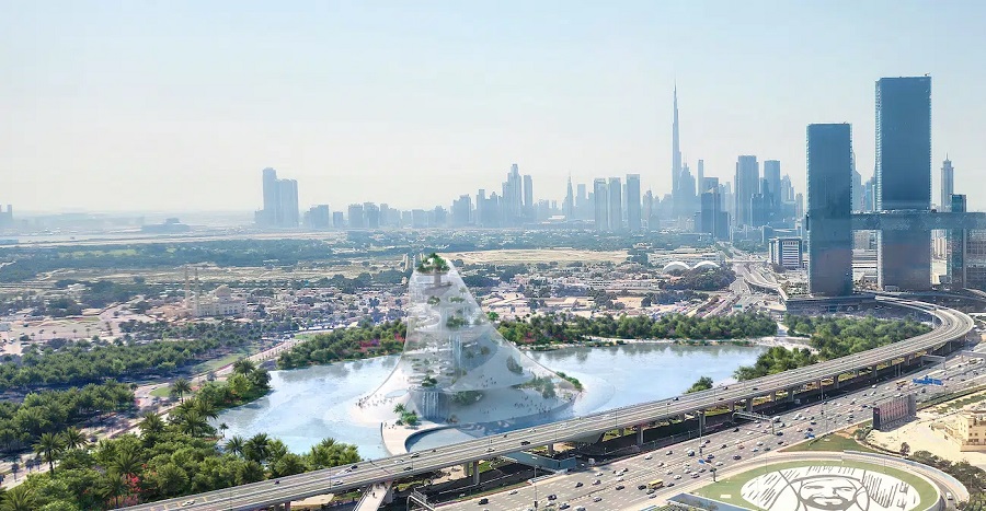 „Издигнат високо над грижите на ежедневния градски живот, Therme Dubai е оазис в небето“, обяснява Елизабет Дилър, партньор-основател на DS+R. „Той се появява от езерото на ревитализирания парк Забил като серия от ботанически острови, подредени в кула.“
