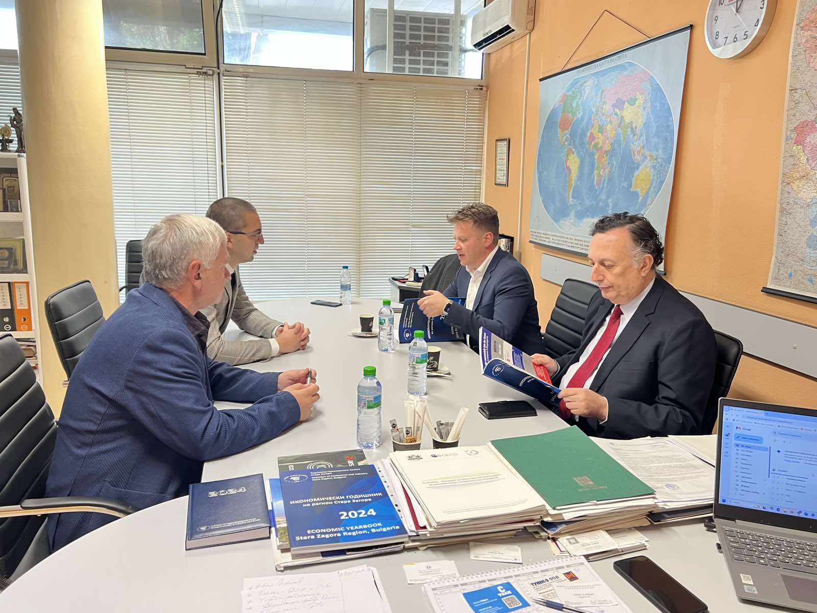 На срещата присъстваха председателят на Старозагорската палата Олег Стоилов и Кристиан Венциславов, управител на старозагорската IT компания Смарт Сенчъри Технолоджис. Гостите получиха Икономически годишник на регион Стара Загора и бяха впечатлени от изданието, каквото не бяха виждали на друго място в България.