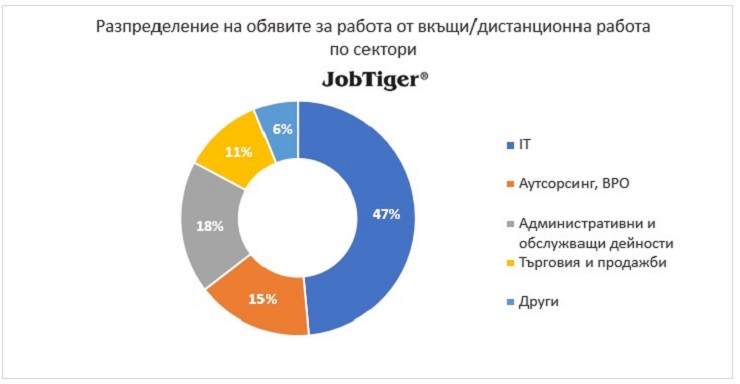 Според анализа на HR компанията и кариерен сайт JobTiger броят на предложенията за работа от вкъщи и/или дистанционна работа е намалял с 4% през март. Общият брой на този тип предложения е около 3300. В сравнение със същия период миналата година също отчитаме спад от 1%, което е 30 обяви по-малко.