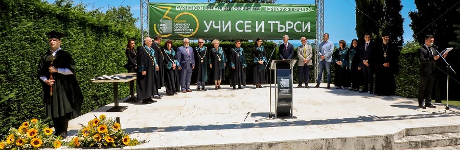 В приветственото си слово към абсолвентите президентът на ВСУ „Черноризец Храбър“ доц. д-р Красимир Недялков изрази адмирациите си към студентите и преподавателите, които превъзмогнаха трудностите на времето и откриват нови възможности за срещи със знанието и професионалната квалификация.