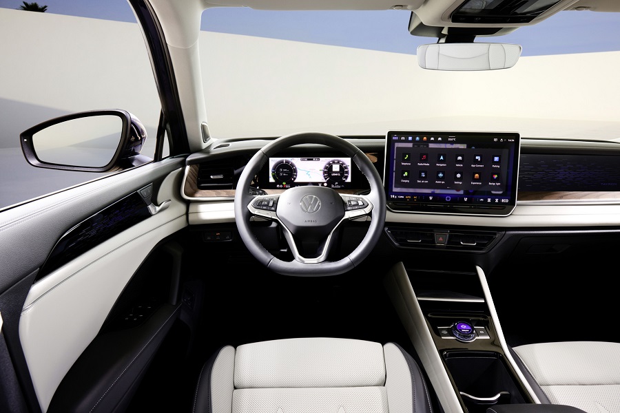 Същия подход е приложен и по отношение на интериора на новия Tayron. Той се отличава с високо качество на материалите, изчистен и стилен дизайн. Материалите, използвани в интериора са меки и приятни при допир, което заедно със свързания кокпит и изобилието от пространство, създава спокойна и хармонична атмосфера.