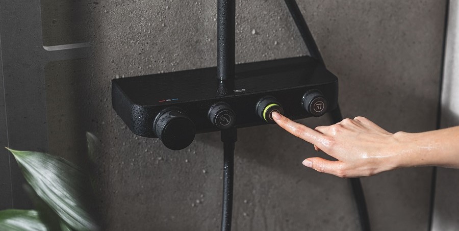 Като идеален контраст към бялата керамика, матово черното покритие създава изискан, балансиран общ външен вид. GROHE предлага новият предпочитан цвят, наречен Phantom Black, в своето професионално портфолио.