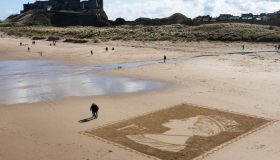 Артист, използващ пясъка като платно за творбите си, отдаде почит към кралица Елизабет II, създавайки огромен пясъчен портрет, изобразяващ пощенската марка на Нейно величество...