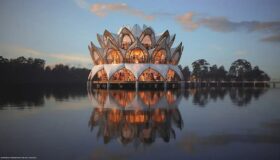 Nelumbo: Ресторант, цъфтящ като лотосов цвят, който се носи спокойно по водата