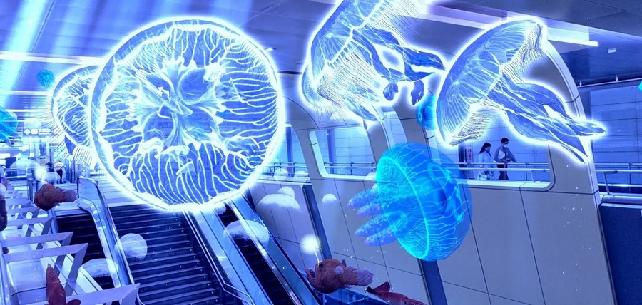 Метростанцията също така разполага с изложба с разширена реалност (AR), която позволява на посетителите да се докоснат до морския живот.