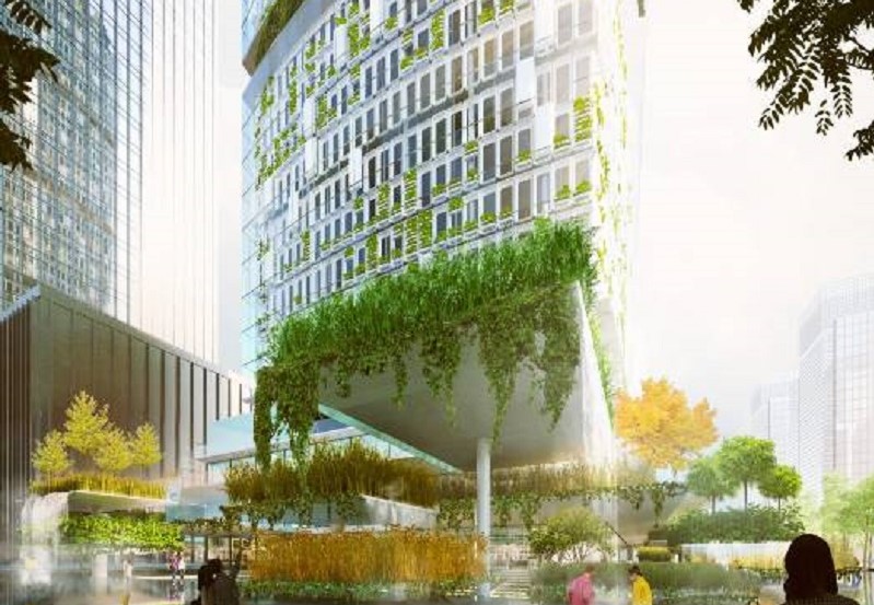 Слънцето ще помогне на културите да растат, което пък ще осигури защита на офисните пространства от лъчите, намалявайки натоварването върху охлаждащата система, докато влажният субтропичен китайски въздух ще помогне за доставянето на влага към растенията.