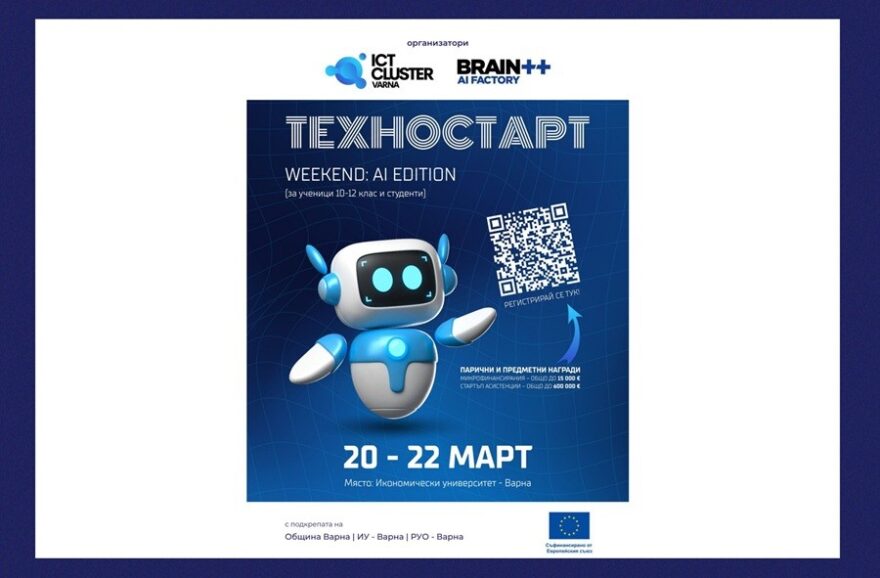 В периода 20–22 март 2026 г. в Икономически университет – Варна ще се проведе ТЕХНОСТАРТ Weekend: AI Edition – стартъп хакатон за ученици и студенти, посветен на разработването на AI-базирани решения по реални бизнес и обществени предизвикателства. Събитието предлага интензивен формат с елементи на акселератор, в който участниците ще работят в екипи, ще развиват иновативни идеи и ще представят проектите си пред жури от представители на бизнеса и технологичния сектор.