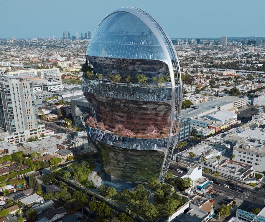 Проектът представя уникална нова форма за силуета на Лос Анджелис и осигурява споделени обществени пространства под формата на терасовидни градини.