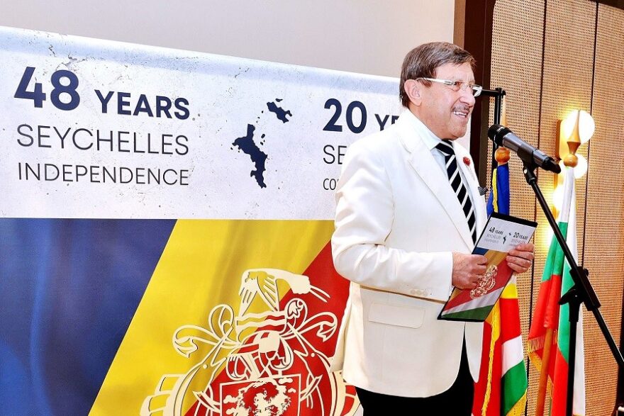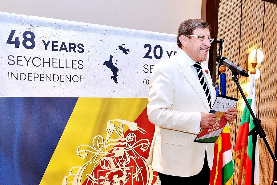 Н. Пр. Мидауи добави: „Днес отбелязваме не само независимостта на Република Сейшели, но и нейното културно многообразие, единство, хармония, толерантност и добро управление. Богати на природни красоти и ресурси, Сейшелските острови имат чудесен почетен генерален консул в лицето на Максим Бехар, който представлява интересите на страната в България повече от 20 години и е сред най-добрите почетни консули, представляващи чужда държава в България.“
