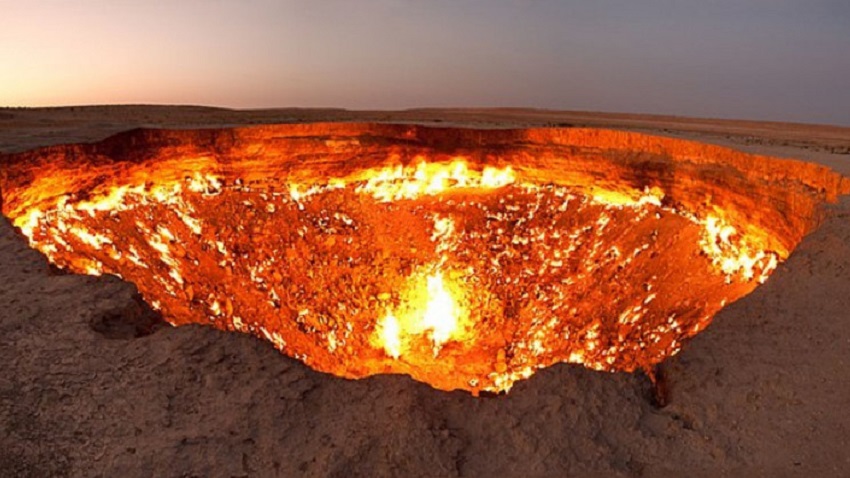 Разположен в пустинята Каракум, на около 161,5 мили (260 км) от столицата на Туркменистан, Ашхабад, газовият кратер Дарваза гори от преди 50 години.